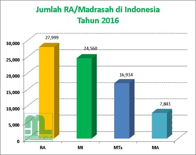 Sebagaimana kutip dari situs Emis Pendis Kemenag, hingga Semester Genap 2015/2016, jumlah RA dan Madrasah di Indonesia mencapai 77.336 lembaga.